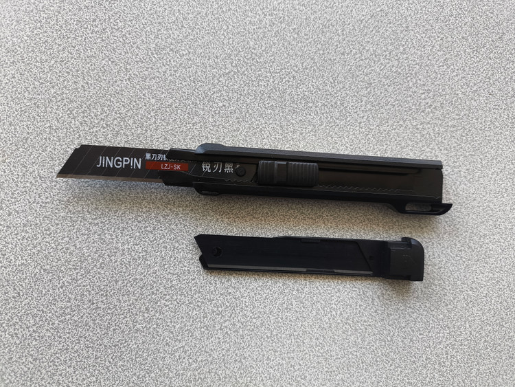 کاتر «جینگ پین »یک کاتر حرفهای با تیغ اضافه درون دسته آن و برای تعویض تیغ آن باید قسمت تحتانی دسته را بصورت ریلی خارج کرده و تیغ کمکی را نیز که زیر آن تعبیه شده خارج و با احتیاط لبه برنده آن اقدام به جاگذاری تیغ نمود.
