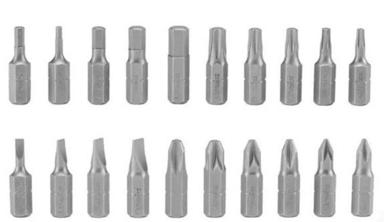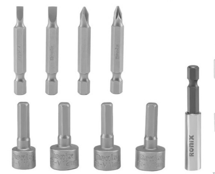 - مجموعه ای متنوع از اندازه ها و انواع بیت ها، مته های پیچشی، مته های بنایی و غیره با کاربردهای متنوع و گسترده