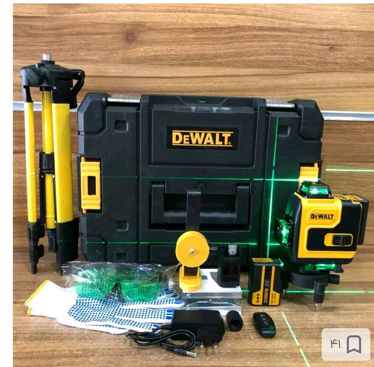 تراز لیزری 4 بعدی 16 لاین دیوالت مدل 4D-360 ا DeWalt تراز لیزری این روز ها یکی از ابزارهایی است که در تمامی مشاغل صنعتی کاربرد بسیاری دارد. این ابزار با دقت بالایی که دارد قادر است کار را برای کاربر راحت کرده و به همین دلیل در تمامی کار ها می توان از آن استفاده کرد. برد مفید این دستگاه در محوطه بیرون (جلو نور خورشید) 100 متر و در فضای داخلی 150 متر هست. اقلام همراه تراز لیزری 4 بعدی 16 لاین دیوالت: دارای جعبه مستحکم دارای باتری اضافه دارای سه پایه قوی همراه با ریموت کنترل عینک برای محافظت از چشم شارژر